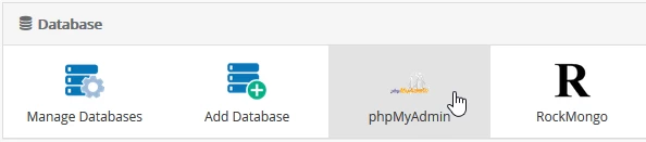• Once logged into the Webuzo admin panel, look for the "Database" section in the displayed window and select "phpMyAdmin" from there