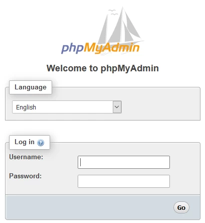 • In the page that will open, a window will appear where the user and the password of the database they wish to access will be entered, after which the "Go" button is pressed.