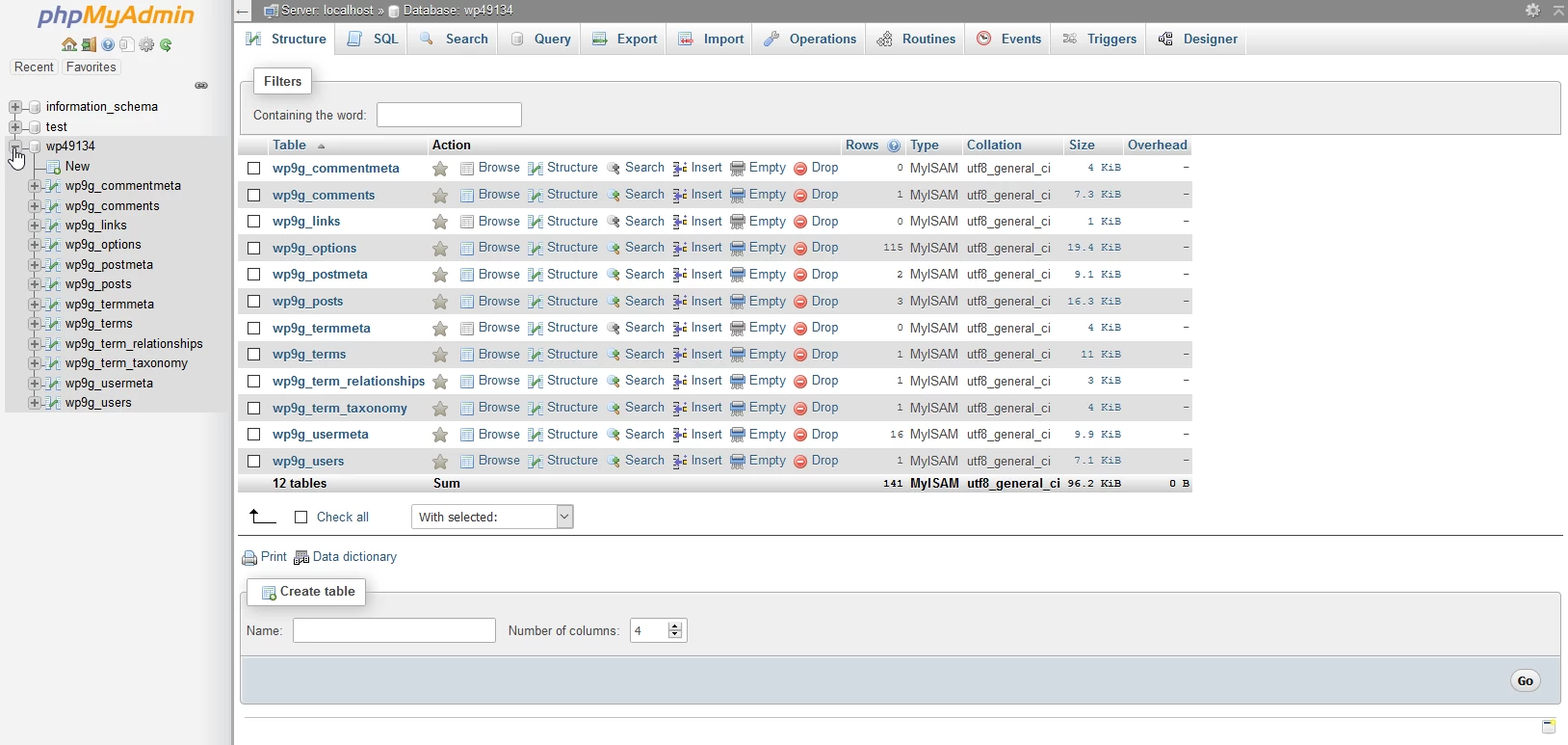 • Webuzo has the PhpMyAdmin application pre-installed in the panel. This application allows us to graphically view the database.
