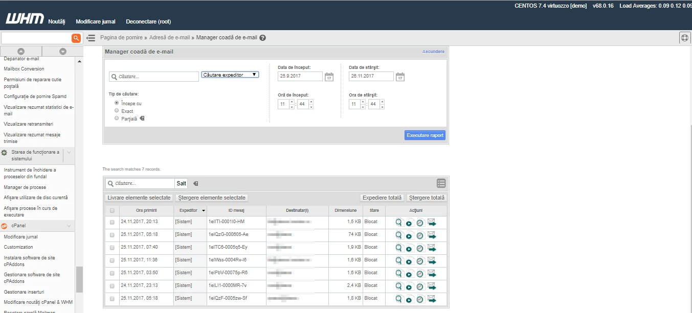 - Here we have the possibility to search or filter messages based on multiple criteria: sender, recipient, message ID, time range, date.